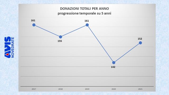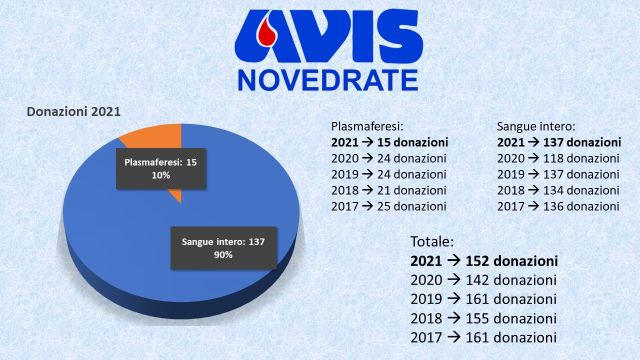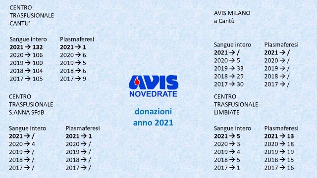 - Cresce il numero complessivo di donazioni rispetto al 2020, anno segnato dall’incedere rapido e inesorabile della pandemia da Sars-Cov2 con le conseguenze che ciò ha portato inevitabilmente con sé. Un risvolto positivo però lo riscontriamo nel numero dei nuovi donatori: 7 (3 F, 4 M) hanno cominciato a donare nel 2021; 1 (1 M) ha effettuato la prima donazione nei primi giorni del 2022; altri 3 (2 F, 1 M) stanno completando l’iter di accertamenti diagnostici per ricevere l’idoneità alla donazione e poter cominciare a donare sangue e/o plasma. Numeri importanti per una sezione come la nostra che nell’ultimo decennio registrava normalmente 3-4 nuovi donatori per anno. La speranza è che i nuovi donatori possano continuare ad aumentare in questo anno 2022 e nei futuri, in modo tale da garantire un necessario ricambio generazionale. Giovani e meno giovani vi aspettiamo il venerdì sera per darvi informazioni o cominciare ad iscriversi per poi donare!