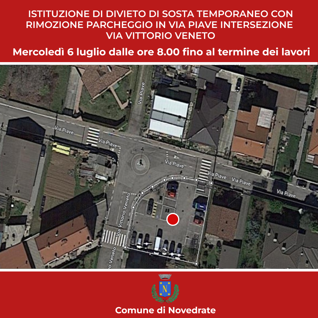 Istituzione di divieto di sosta temporaneo con rimozione forzata del Parcheggio in Via Piave intersezione con Via Vittorio Veneto per manutenzione e pulizia verde.
