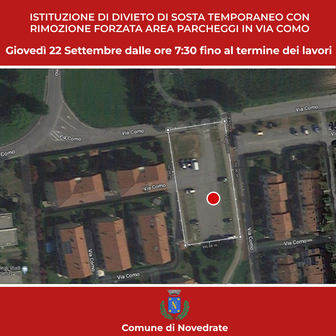 Istituzione di divieto di sosta temporaneo con rimozione forzata presso area parcheggi di Via Como fronte civ. 34 - 80 pulizia e manutenzione del verde