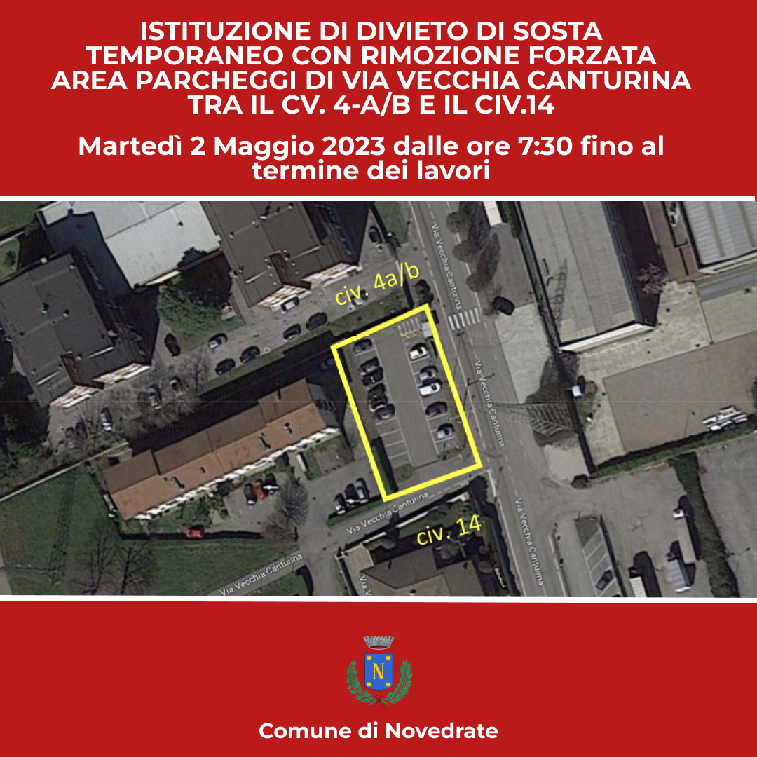 Istituzione di divieto di sosta temporaneo con rimozione forzata area parcheggi di Via Vecchia Canturina tra il cv. 4-A/B e il civ.14 per pulizia parcheggio e taglio manutenzione verde .